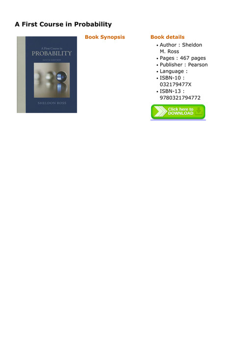 First Course In Probability A 10th Edition Pearson