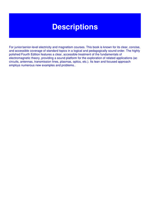 Download Epub Library Foundations Of Electromagnetic Theory 4