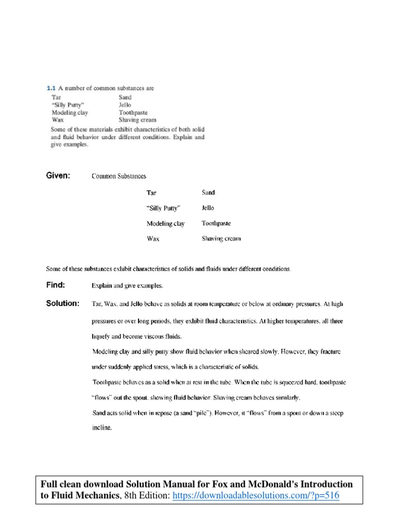 Solution Manual For Fox And Mcdonalds Introduction To Fluid