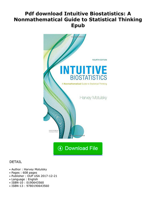 Pdf Intuitive Biostatistics A Nonmathematical Guide To